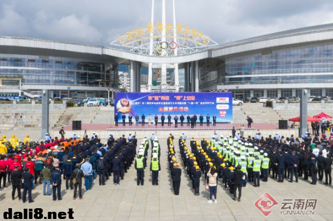 5月29日上午,以“幸‘盔’有你·‘带’上安全”为主题,大理白族自治州道路交通安全委员会联动各成员单位,在大理市组织开展摩托车电动车交通违法行为专项整治暨“一盔一带”安全守护行动主题宣传活动。; ~! r, b' `% w9 e+ m