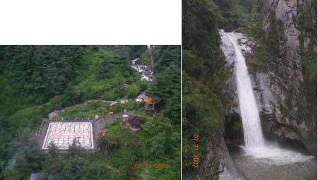 远处一丛小小的瀑布自山上洒落下来,如一支插在笔筒中的水笔,其下的水潭便是著名的清碧溪。走过一座颤颤的铁索桥,前行百米来到瀑布前,没有阳光照耀的潭水看起来只是泛着淡绿色的普通水洼,全然没有照片上那种幽蓝。相邻的山峰上刻着两个红漆大字——禹穴,传说大禹当年曾来过此地。但大禹治水主要是在中原地区,应该不会治到这里来吧?清碧溪是景区的终点所在,再往深处还有小路通往“玉带云游路”。云游路从此地一直通达小索道所在的苍山中和寺景区,全长11公里,由于建在山腰之上,犹如一条玉带盘绕苍山,所以有了这么一个好听的名字,如果时间充裕的话走一走也是不错的选择。我们因为后面还要去洱海,到此便返回了。* P. q. n. H9 ]8 O