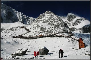 玉龙山雪山游记 车刚出了丽江古城,迎面铺展出一大片空旷的荒原,只长着短短的青草和矮矮的松树,荒原的尽头耸立着圣山——玉龙雪山,见不到她的峰顶,只见到山与云交缠在一起,山似云色,云似山色,黑压压、青灰灰地挡在荒原的尽头,又似山、又似云,让人觉得又回到了洪荒年代…… 登上了玉龙山半腰,走进了原始森林,巨大的古木参天而立。穿行在林间小道上,见不它的梢头,不知它有多高。 突然,一大片林木围抱的圆型草地出现在眼前,尽是铺地的草苔,不长树木,这是高山气候形成的植物现象,当地人称之为草甸。 抬头望去,雪山峰顶若隐若现,早已是另一派景象,峰顶如大海中的巨礁,疾云如怒潮,卷着可怕的浪花,乘着风撞击着礁石。又似草原上的一座小山,千万骑骏马,排山倒海地从它身边驰过…… 我彻底被征服,完全被震撼,同时想到那些江南同胞,他们被小桥流水所迷倒,他们与细雨柳丝共缠绵,他们固然诗情画意,只是他们也许不知道大自然还有另一种美,凄凉的美,荒漠的美,悲壮的美!而我,这正是我欣赏的美,我崇拜气势,我顶膜雪山! 我正在怔怔发呆,正在胡思乱想,突然远出传来一阵美妙的歌声,粗犷、动人、陌生,是仙乐?是天赖?噢,不!放眼望去草甸的另一边一群红云在舞动,原来是一群彝族姑娘正在轻歌慢舞……