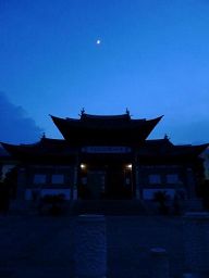 住在这个地方,感觉节奏一下子就慢了下来,反正也有多出来的三天可以挥霍,大可以晒晒太阳、爬爬山、溜溜鸟。放下行李,哈啦几声,就跑出去找吃的。去的人民路的益恒饭店,据说童叟无欺,果然酒足饭饱后一算账还不到50元。吃完饭慢慢溜达,古城不大,从东走到西也不过20多分钟,走走逛逛,很是舒适。回去的时候穿小路,走到大理一中门口,发现是原来的西云书院,建筑很是雄伟。趁着暮色偷偷溜进去逛了一圈,小桥流水,亭台楼阁,碑额诗联,比比皆是。真羡慕这里面的学生,有这样诗意的居所。/ j" @7 |' j- \7 w. O. U3 P8 W