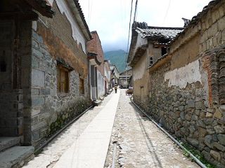 ; G. W1 D2 {+ I! q e3 g喜洲有名的就是白族民居了,其中以严家大院为最。严家大院有两处,一处是带三道茶表演的比较雕琢的大院,收费50;我去的是四方街口破旧的没什么人管的大院,收费5元。一道道门走进去,虽然一副凋零衰败的样子,但是什么“走马转角楼”、“三坊一照壁”、“四合五天井”都还在的,门窗上花鸟题材的木刻很精细,房顶和墙壁上有漂亮的但已经褪色的壁画。走进后花园,还矗立了一个西式的三层小洋楼,被四处的白族建筑所包围,也别有意味。出了严家大院,在四方街买一个咸的喜洲粑粑,象是葱油饼的味道,但用的是瘦肉和猪油,明火烤出来的,味道格外的香,这就是喜洲的味道了吧。