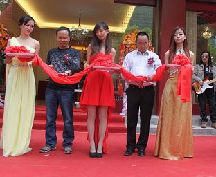 <P>华兴地产董事长黄建新 剪彩仪式前致词 在结束表演之后,于上午10点08分剪彩仪式正式开始,华兴地产董事长黄建新与蒋经理共同携手为华兴商业城剪彩,当他们手中的剪刀剪断红绸,礼炮声骤然响起,随之是现场所有人鼓掌热烈祝贺。