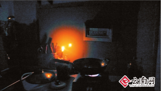, h. f/ b& ]) A- }2 V, |因“物管费”之争,大理五洲国际商贸城A区数十户商户被断电。商贸城A区目前共有近400户商户,所有商户经营的铺面都是楼上楼下两层。其中有数十家商户,楼下一层作为商铺使用,楼上一层则用来居家吃住。被断电之后,商户被迫在楼上狭小的空间内点着蜡烛使用钢瓶液化气做饭。有商户说:“我家就像一个定时炸弹。”接到商户热线反映后,晚报记者于7月29日到大理五洲国际商贸城进行了走访调查。