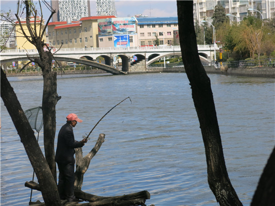 , G* O! W! h# [6 D- ?# Z8 B9 Y 小编走访了龙尾关,发现这里虽算不上旅游胜地,却还是有些外地人慕名前来,通过观察,那些来自外地的家庭旅行团先前步伐还很快的走在桥头上,而在下一刻,就会不由自主的放慢脚步去欣赏在城中的那份宁静,在临走前,还不忘买上一碗凉鸡米线带走。除此之外,小编还采访了在龙尾关口卖包子卖了5年的一位阿姨(不愿透漏姓名),按这位阿姨的话来形容龙尾关和正阳时代广场这两个隔河对望的地方,就是“一边是城市的高调生活,一边是平民的低调生活”。通过了解,阿姨说在这周围有水利水电的宿舍区,龙泉片区,还有其它大大小小的住宅区,但是生活在这边的人,都喜欢来这里买早点,或是采购些食材,因为消费水平并不高,买东西很实惠,所以很适合平民居住,如果想去娱乐一番,就可以直接走过黑龙桥买自己的所需,那些配套让周围的生活变得很方便,我想,不论住在桥的哪一边,都是可以接受的。- G% \& l) p0 c2 Z3 @