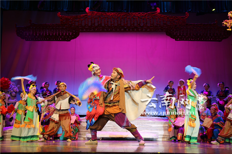 6 N' l# g( J/ h/ p云南网讯(记者 杜京 摄影报道)“哎!月亮出来亮汪汪,亮汪汪,想起我的阿妹在深山,在深山。妹像月亮天上走,天上走。郎啊!郎!郎!就像山下小河淌水清悠悠……”7月23日晚,从全国基层院团戏曲会演现场、北京红塔礼堂传出这首耳熟能详的“东方小夜曲”,来自《小河淌水》的故乡——云南省大理白族自治州弥渡县的大型花灯戏《山村·小河·月亮》正在精彩呈现。